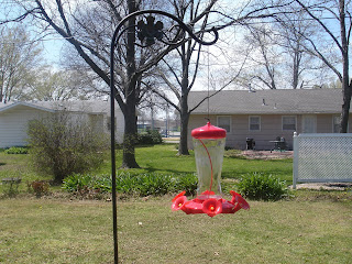 Yesterday I spent some time working out in the yard ~ mowing, weeding, and putting up a bird and hummingbird feeder. My neighbor’s yard man, Sam, is supposed to come over today to use his leaf blower to blow leaves out from the side of the house onto the lawn, shredding the leaves to tiny pieces. He said this will fertilize our lawn. That is fine, as long as the leaves are no longer like Mt. Everest on the sides of our house! He is also going to trim around our trees, and around our driveway pavement. We then will have a nicely manicured lawn.